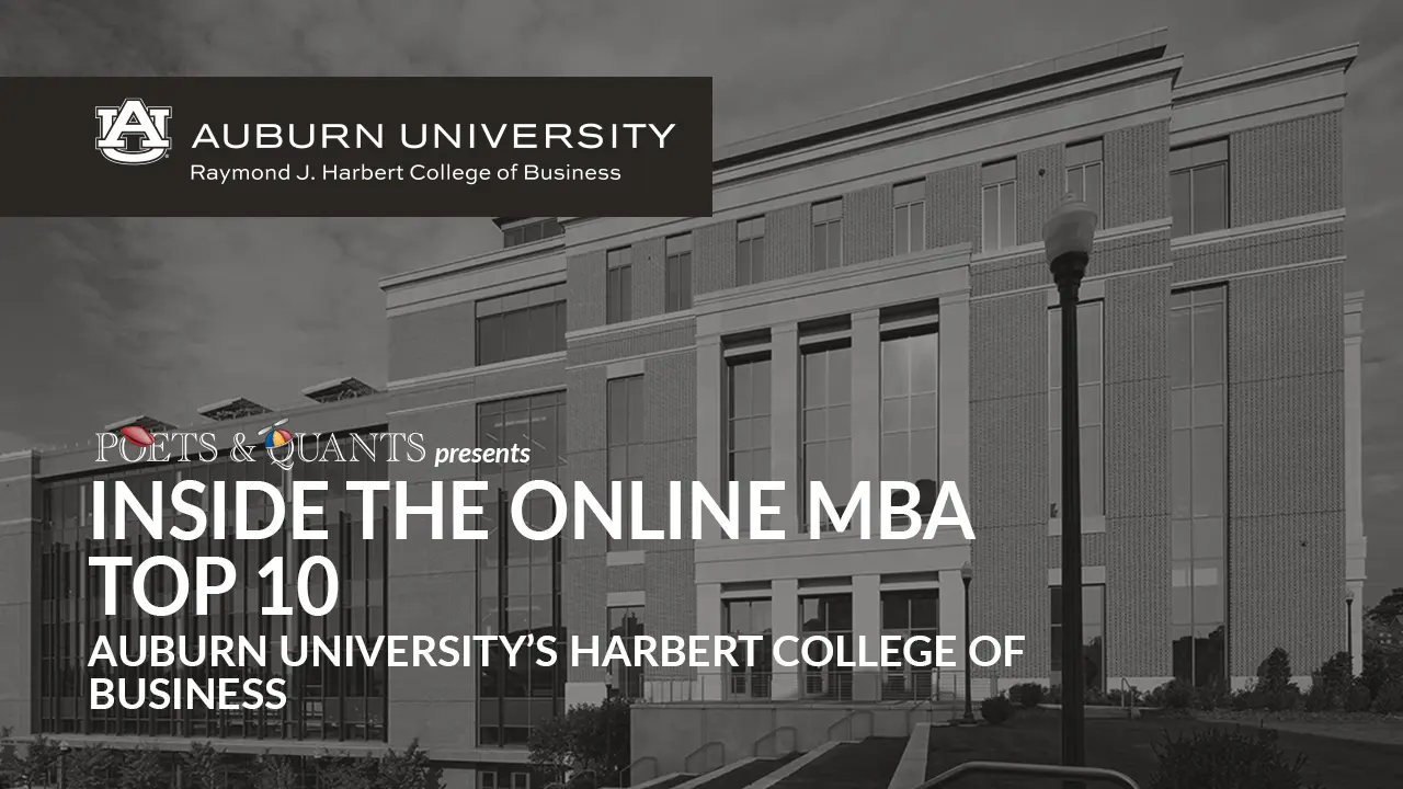 Inside Online MBA Top 10: Auburn University’s Harbert College Of Business by: John A. Byrne on February 02, 2026 | 54 Views February 2, 2026 Copy Link Share on Facebook Share on Twitter Email Share on LinkedIn Share on WhatsApp Share on Reddit Discover why Auburn University’s Harbert College of Business has been ranked in the top 10 Online MBA programs of 2026. Hear from Dr. Jordan Holladay, Director of Graduate Recruiting, as he highlights the program’s defining strengths, flexible learning format, and what graduates say they value most about their Harbert MBA. © Copyright 2026 Poets & Quants. All rights reserved. This article may not be republished, rewritten or otherwise distributed without written permission. To reprint or license this article or any content from Poets & Quants, please submit your request HERE.